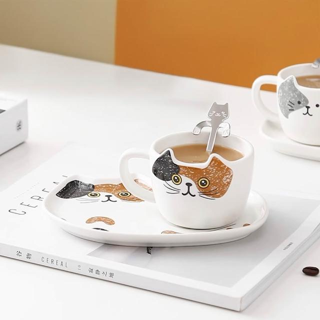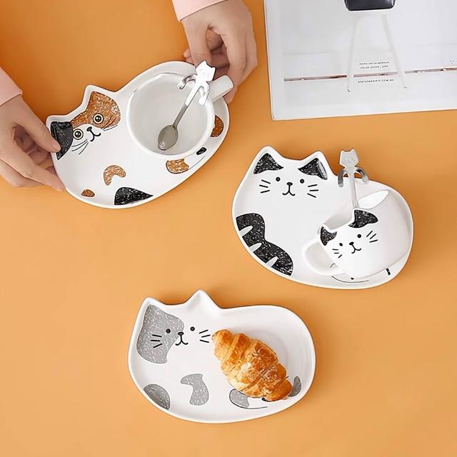 版畫風貓咪下午茶杯具組 杯具組 貓咪馬克杯 馬克杯 咖啡杯 餐盤 下午茶具 餐具組 貓咪咖啡杯 陶瓷杯子