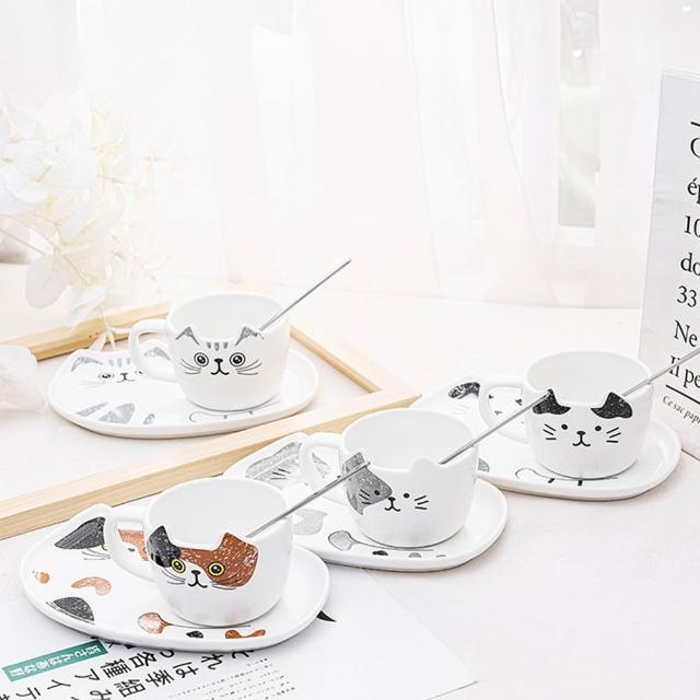 版畫風貓咪下午茶杯具組 杯具組 貓咪馬克杯 馬克杯 咖啡杯 餐盤 下午茶具 餐具組 貓咪咖啡杯 陶瓷杯子