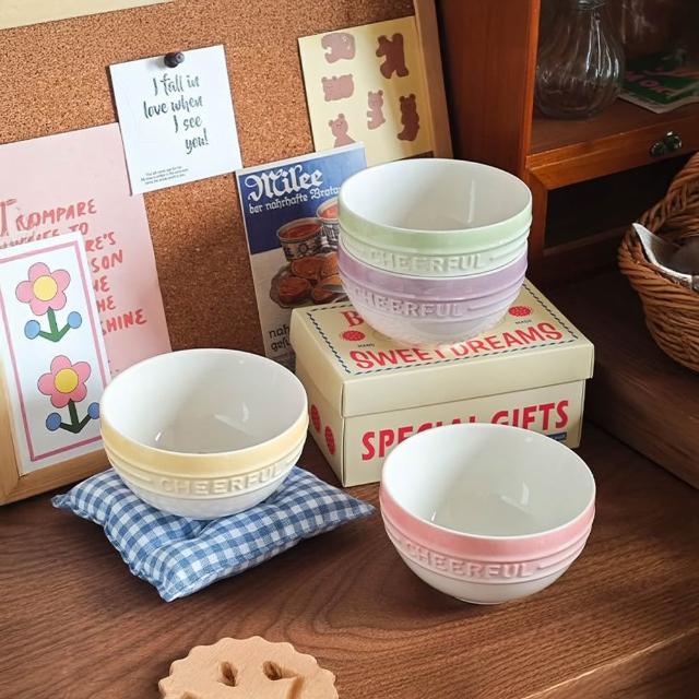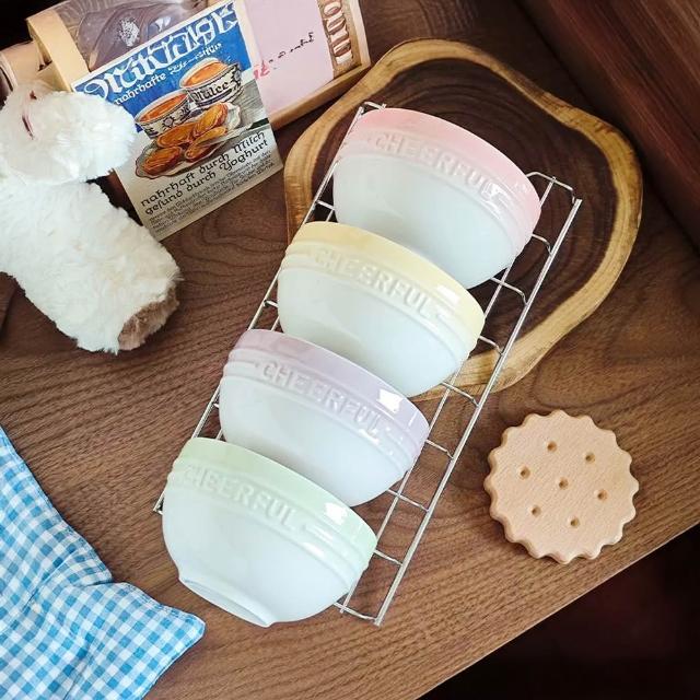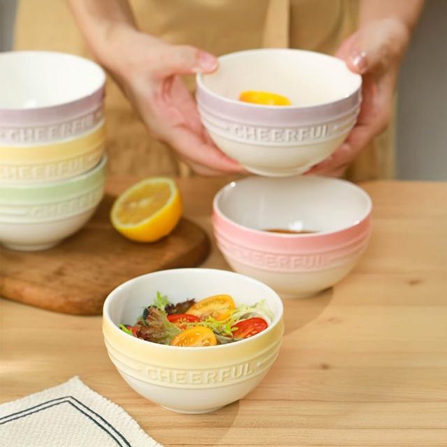 漸變色彩陶瓷碗 4.5吋碗 陶瓷碗 碗 餐具 湯碗 飯碗 浮雕碗 米飯碗 小碗 沙拉碗 簡約浮雕碗