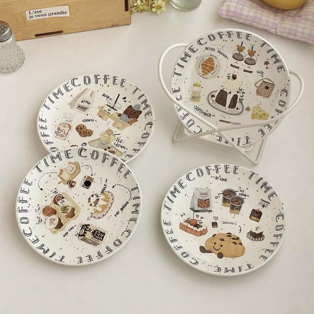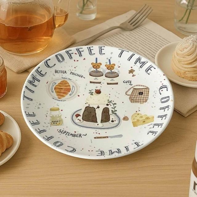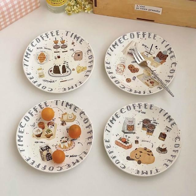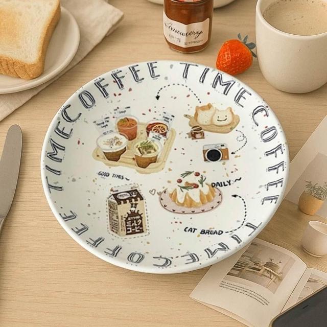 插畫點心盤 蛋糕盤 6吋 點心盤 手繪 插畫 陶瓷盤 插畫陶瓷盤 小盤子 碟子 盤子 麵包盤 15.5cm 釉下彩 防滑