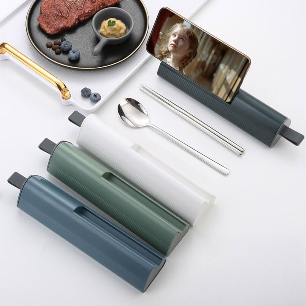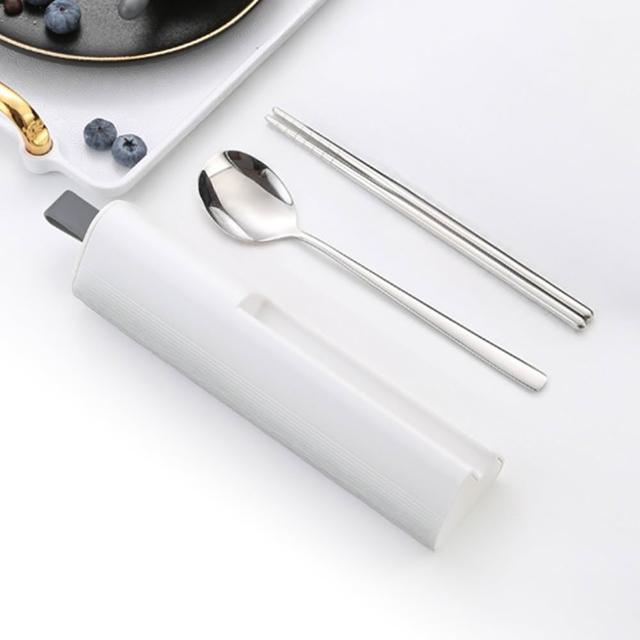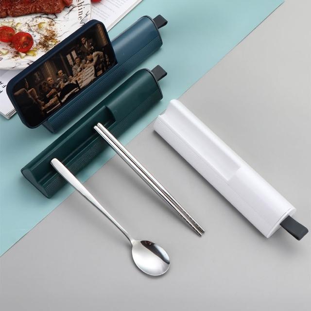 304不鏽鋼餐具3件組(筷子+湯匙+收納盒) 環保 便攜 露營 野餐 上班族 不鏽鋼筷子