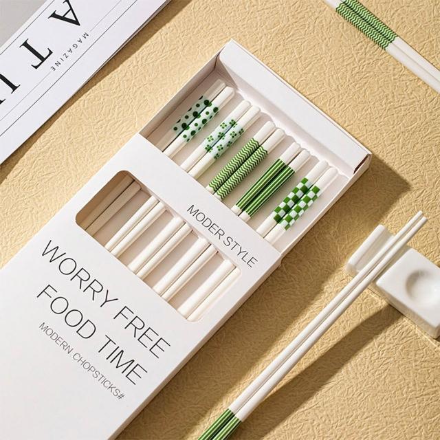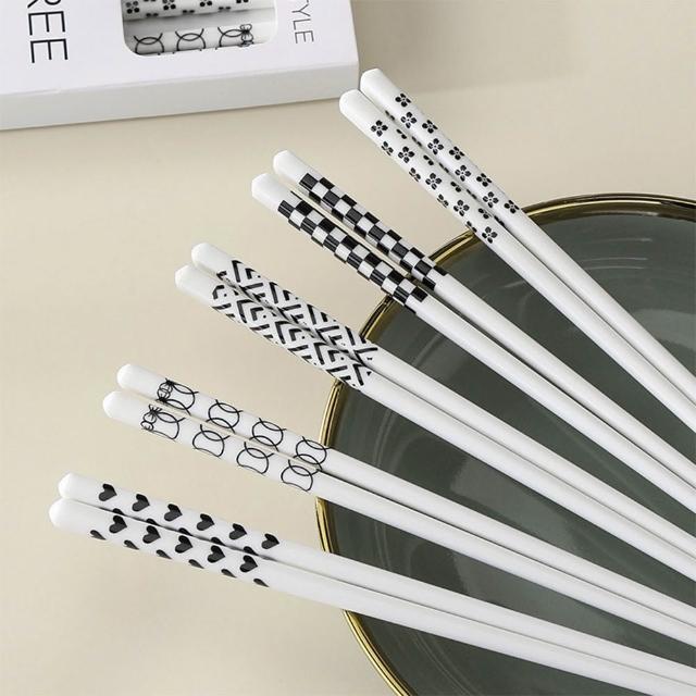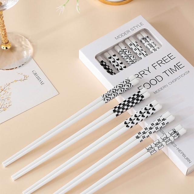 陶瓷筷子組 北歐簡約 5雙入 25cm 禮盒 黑白 陶瓷筷 赫本風 陶瓷 筷子 套裝 耐高溫 簡約 送禮 方筷 白瓷筷