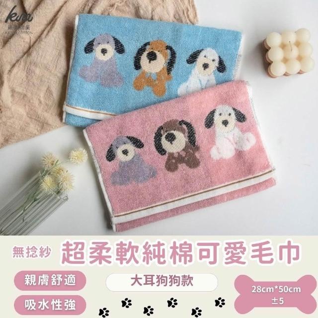 凱美凱美棉業|8條組 隨機出色 純棉無捻紗 吸水童巾/擦澡巾/洗臉巾 大耳狗狗款