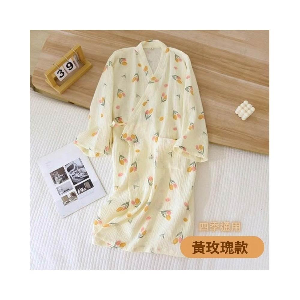 凱美凱美棉業|單入組 日式睡袍女雙層紗布純棉睡衣 短袖浴袍 汗蒸服 甜美可愛家居服