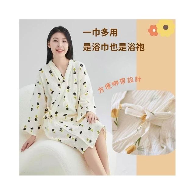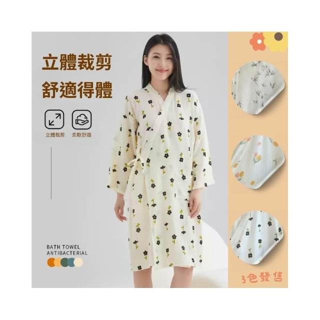 凱美凱美棉業|單入組 日式睡袍女雙層紗布純棉睡衣 短袖浴袍 汗蒸服 甜美可愛家居服