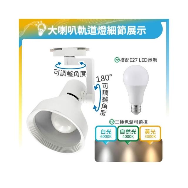 ✨台灣現貨∣免運▸E27 大喇叭軌道燈ˍ角度可調ˍ廣角照明ˍLED燈泡ˍ高光ˍE27燈泡ˍ裝飾燈ˍ軌道條ˍ復古型