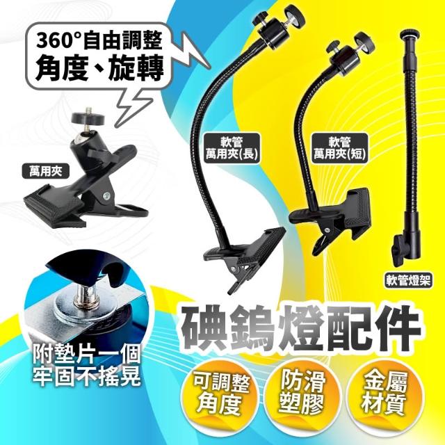 擺攤神器萬用夾工作燈(加長蛇管/附防滑墊片)強力大夾口/碘鎢燈專用燈座/夜市照明燈/施工燈/台灣現貨