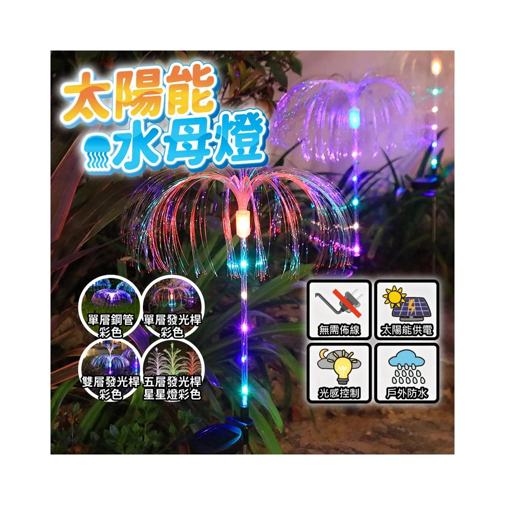 戶外美學太陽能水母燈 七彩變換/防水插地燈(庭院花園裝飾/露營氣氛燈/草坪燈/免接電/免運)