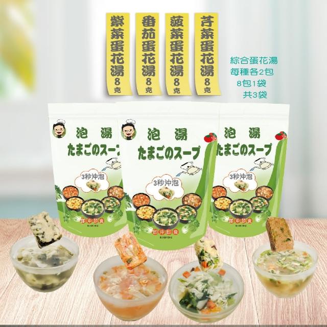 蔡薑君綜合蛋花湯 4種口味 熱沖即食 X3袋 (8入/袋) 即食沖泡湯 免煮 湯塊 蛋花湯 沖泡湯 湯底