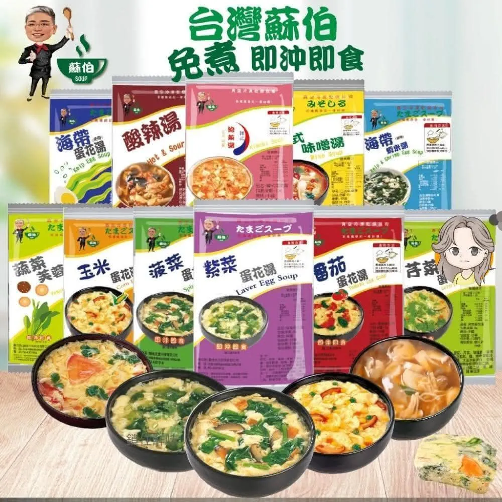 蘇伯蘇伯湯 速食湯包 蛋花湯 紫菜/菠菜/番茄/玉米/芹菜 10包 8g/包*10包 (熱沖即食 方便快速 來杯熱湯)