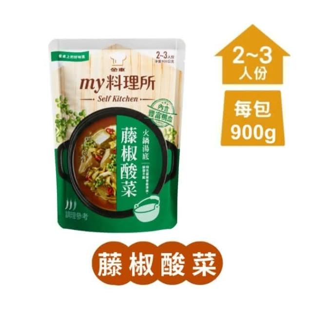 金車/伯朗my料理所 胡椒豬肚 藤椒酸菜 火鍋湯底 900g/包