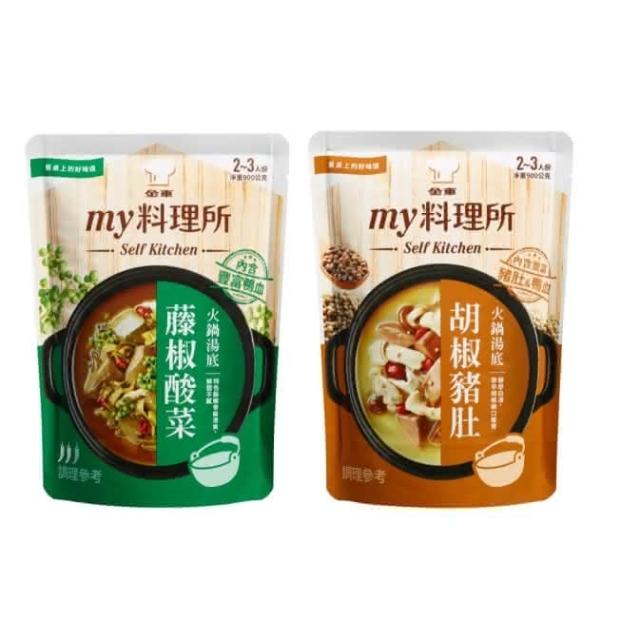 金車/伯朗my料理所 胡椒豬肚 藤椒酸菜 火鍋湯底 900g/包