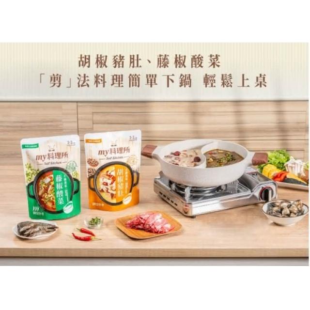 金車/伯朗my料理所 胡椒豬肚 藤椒酸菜 火鍋湯底 900g/包