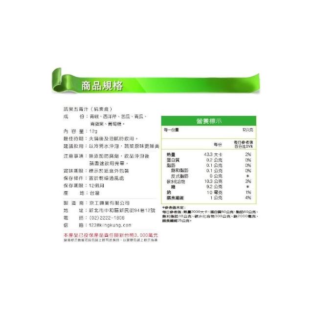 京工養生館京工 蔬果五青汁 30包 (12g/包) (青蘋果、青苦瓜、青椒、青瓜(大黃瓜) 西洋芹菜 五種綠色蔬菜)