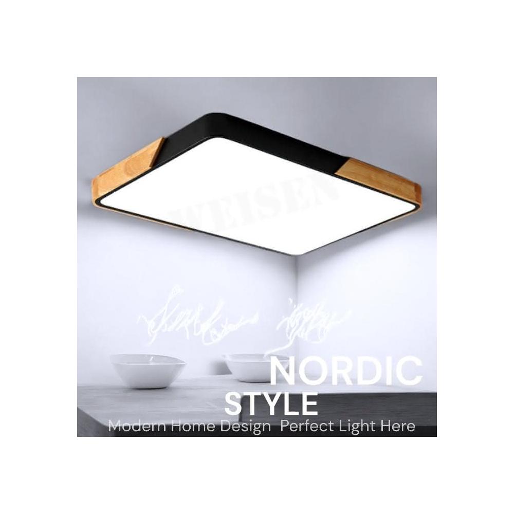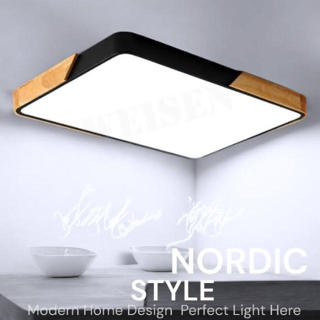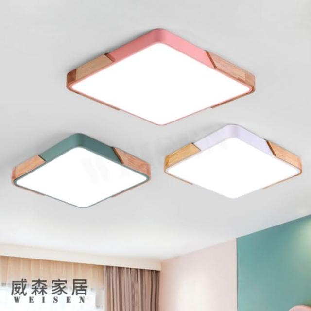 《威森家居》 北歐 實木馬卡龍方形吸頂燈 長方小號款65x43cm 遙控調光調色 96W 適用9-12坪 高亮(L180113)