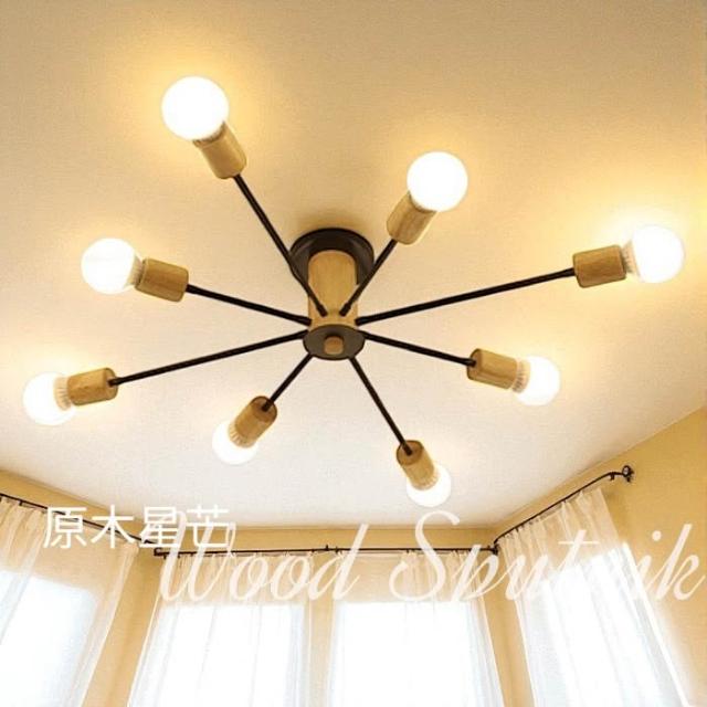 《威森家居》美式 實木放射管吸頂燈 工業風 混搭風 衛星分子 原木星芒 L180424