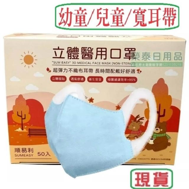 *榮泰日用品* 現貨供應 順 易 利 幼童/兒童立體醫用寬耳帶口罩 不織布寬耳口罩