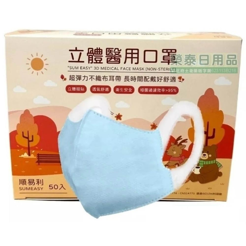 *榮泰日用品* 現貨供應 順 易 利 幼童/兒童立體醫用寬耳帶口罩 不織布寬耳口罩