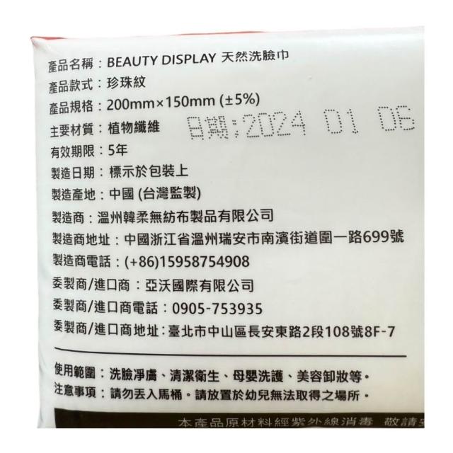 beauty display 天然洗臉巾 珍珠紋 100抽 (有效期限:2028/11/17)