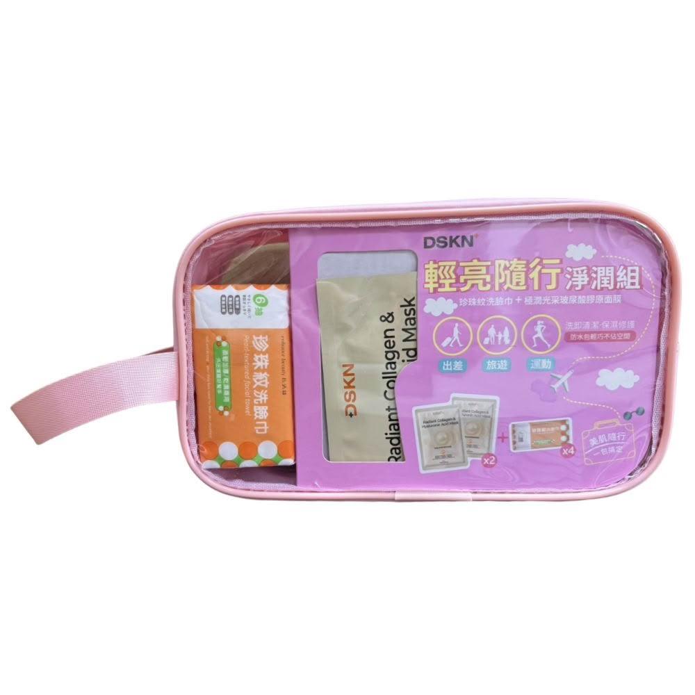 DSKN 輕亮隨行淨潤組 極潤光采玻尿酸膠原面膜x2+珍珠紋洗臉巾6抽x4