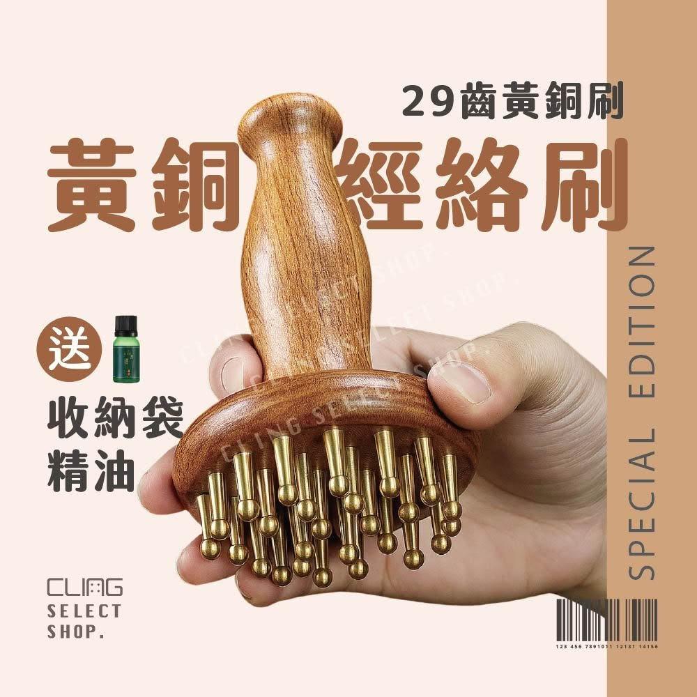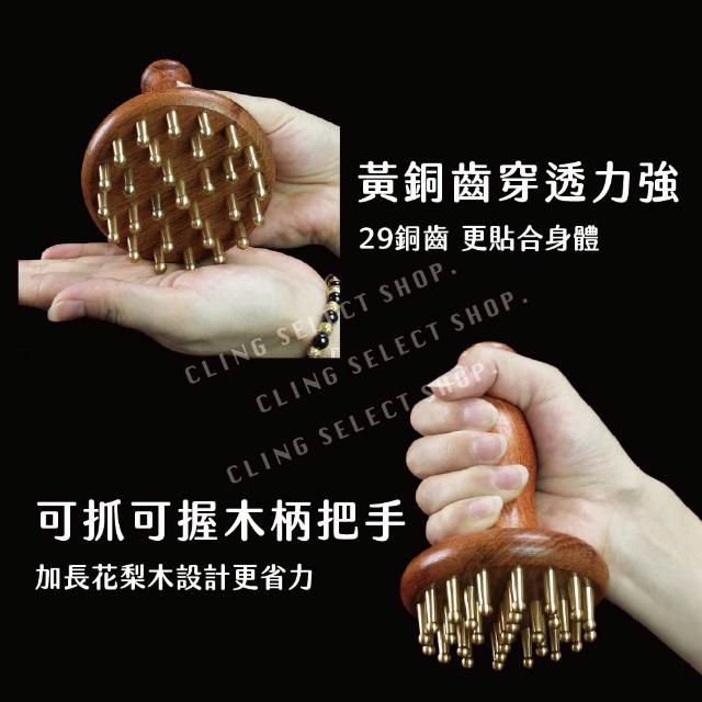 [送精油/收納袋] 黃銅經絡刷 經絡刷 梨花木 29齒黃銅刷 長柄經絡刷 全身按摩 手臂按摩 肚子按摩 黃銅刷穿透力強