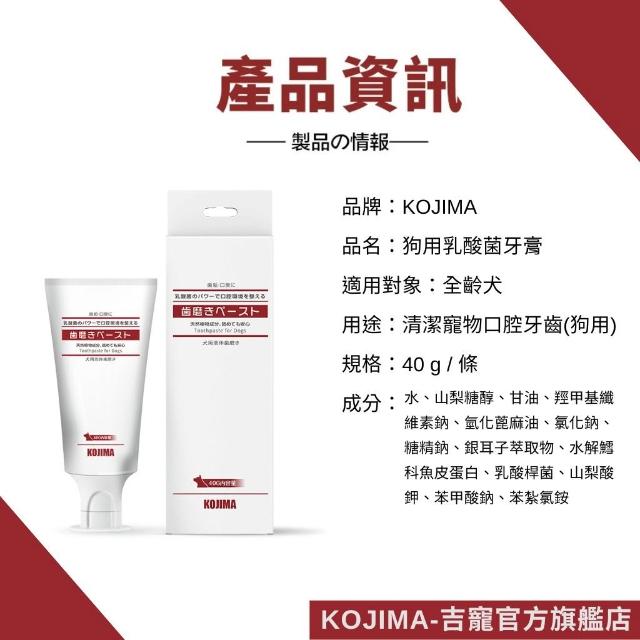 KOJIMA日本KOJIMA 狗專用乳酸菌牙膏 寵物牙膏 狗牙膏 狗狗牙膏 犬用牙膏 寵物口腔護理 牙結石 口臭改善 台灣總代理