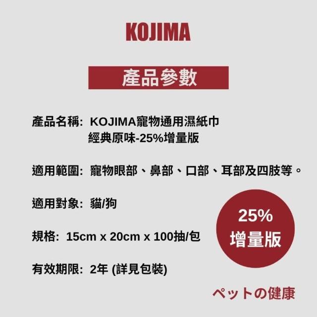 KOJIMA品牌原廠授權 台灣總代理 寵物全身通用濕紙巾 經典原味 25% 增量版 寵物濕紙巾 狗濕紙巾 貓濕紙巾 全身通用