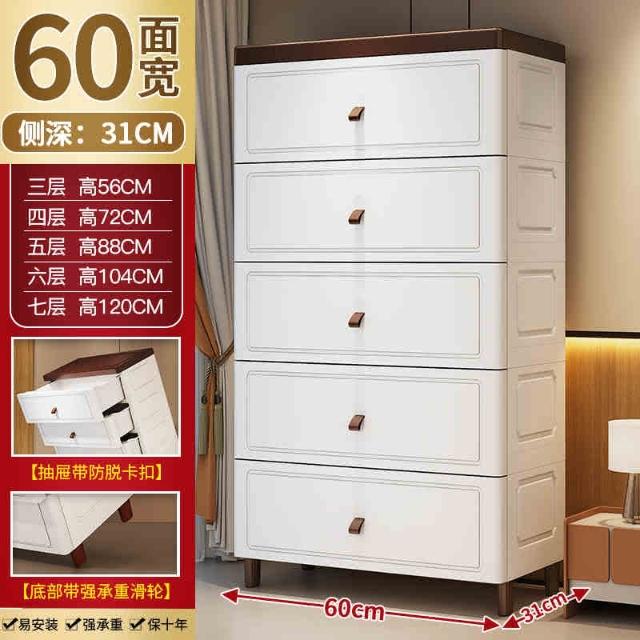 加厚 抽屉式 收纳柜 客厅 置物柜 多层 家用 夹缝储物 柜子 日式 卧室 床头柜 加厚60cm 寬