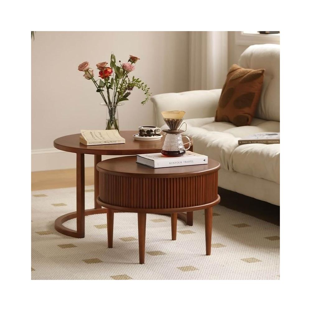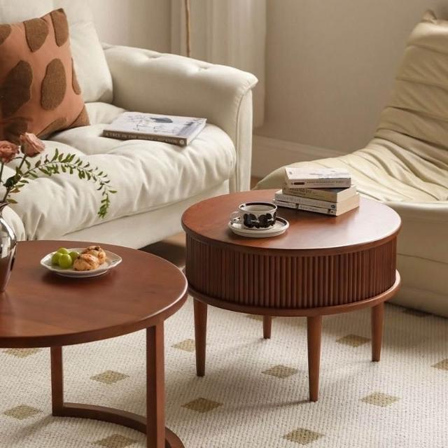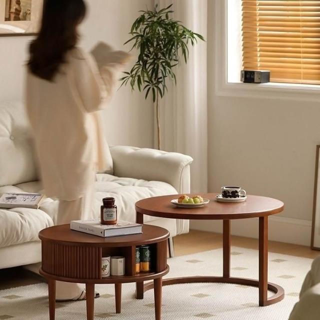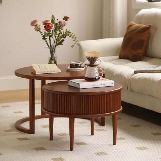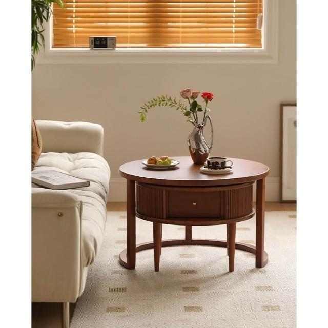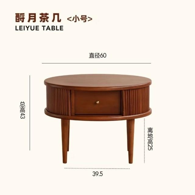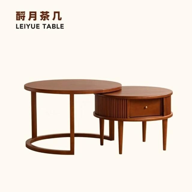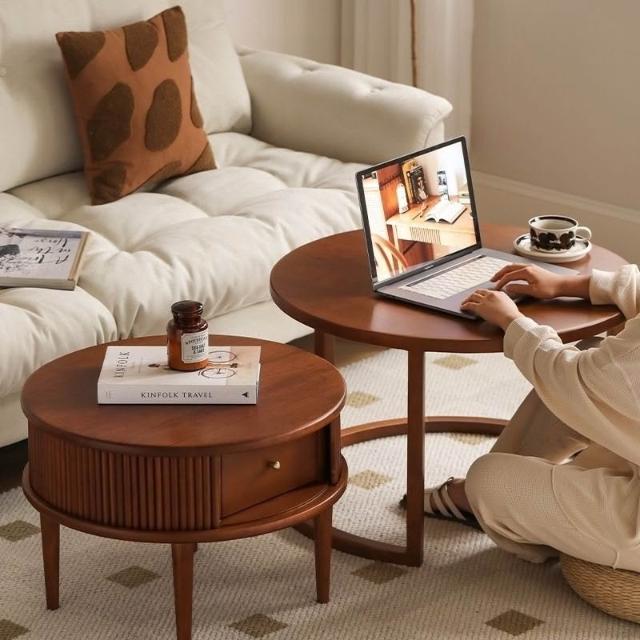 免運 可開髮票 茶幾邊桌 茶幾 酹月茶幾中古圓形茶幾組閤小戶型實木邊幾簡易小圓桌櫻桃木可移動 茶幾 客廳桌 茶幾桌