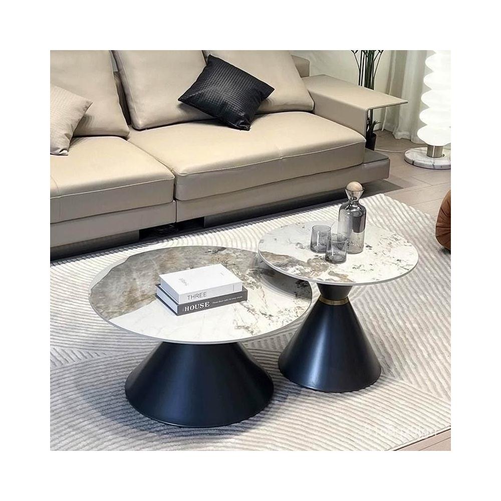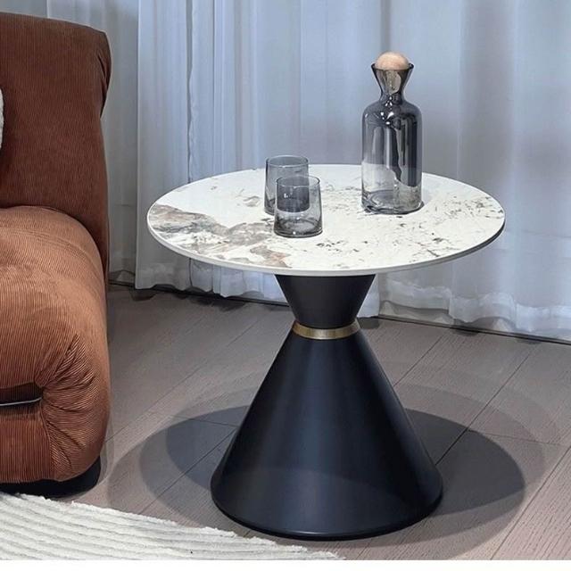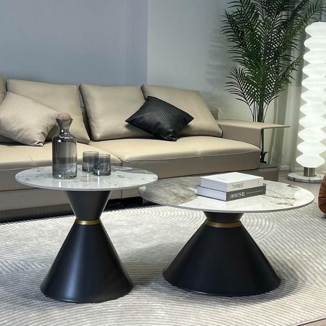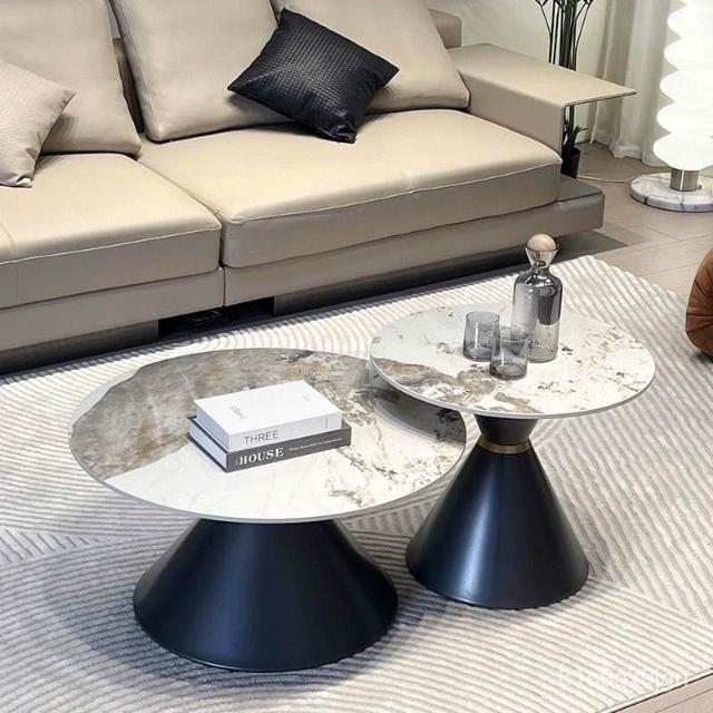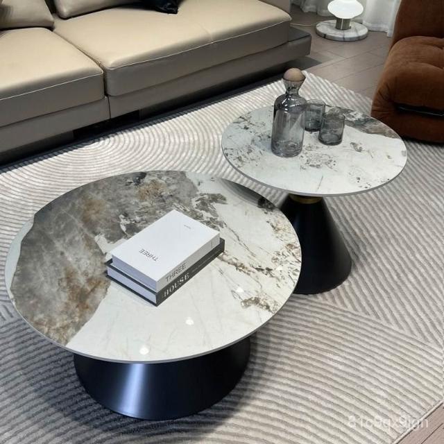 免運 沙髮桌 實木茶幾 圓形桌子 客廳巖闆茶幾家用大小茶桌幾陽臺現代簡約小戶型輕奢錐形圓形邊幾 邊桌 組閤茶幾 茶幾