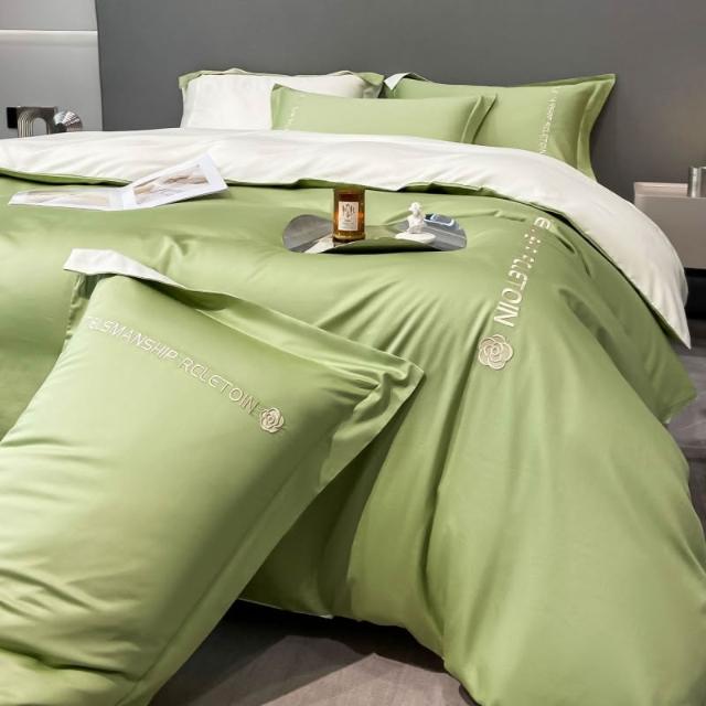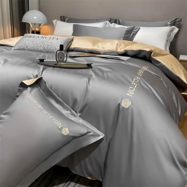床上四件套批發輕奢水洗冰絲床笠三件套刺繡高端被套天絲床單床品