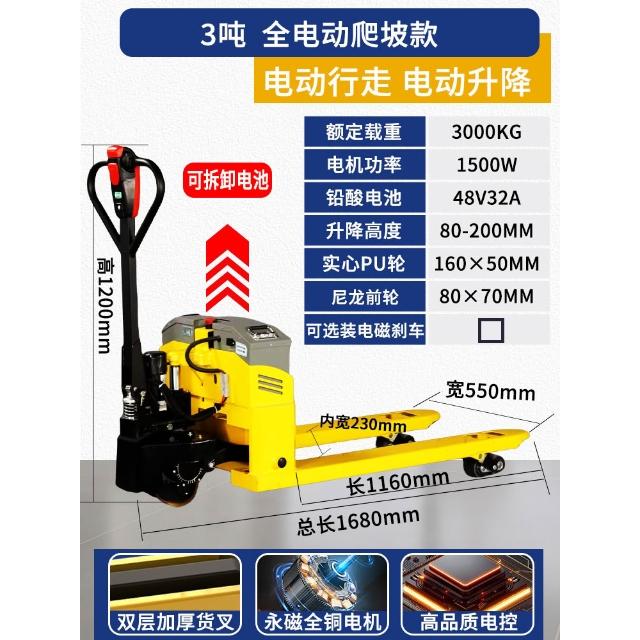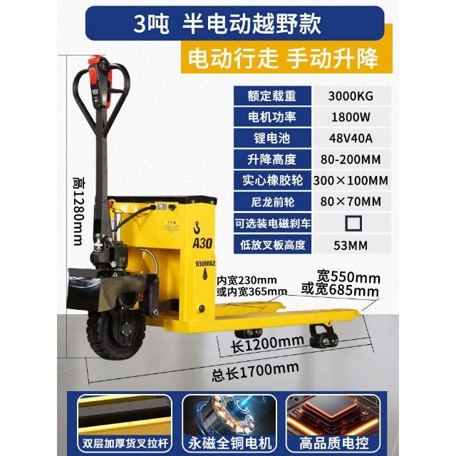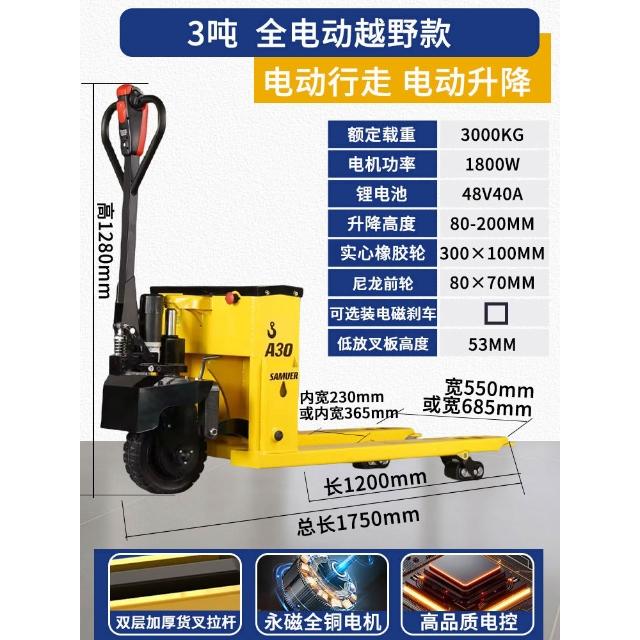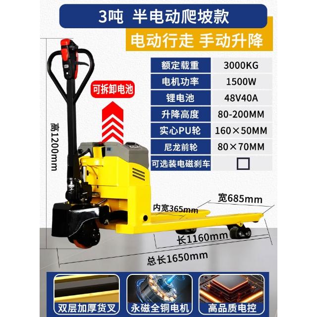 西林電動地牛叉車液壓手動半電動叉車1噸2噸3噸小型鋰電池搬運車