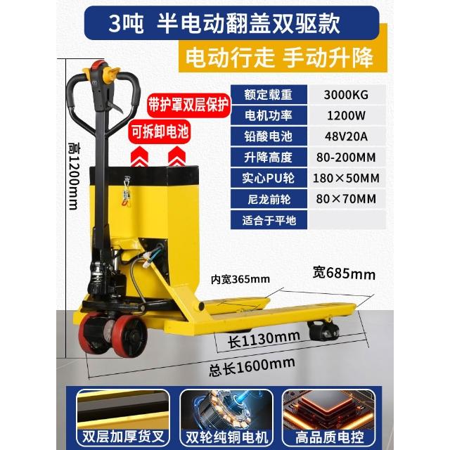 西林電動地牛叉車液壓手動半電動叉車1噸2噸3噸小型鋰電池搬運車
