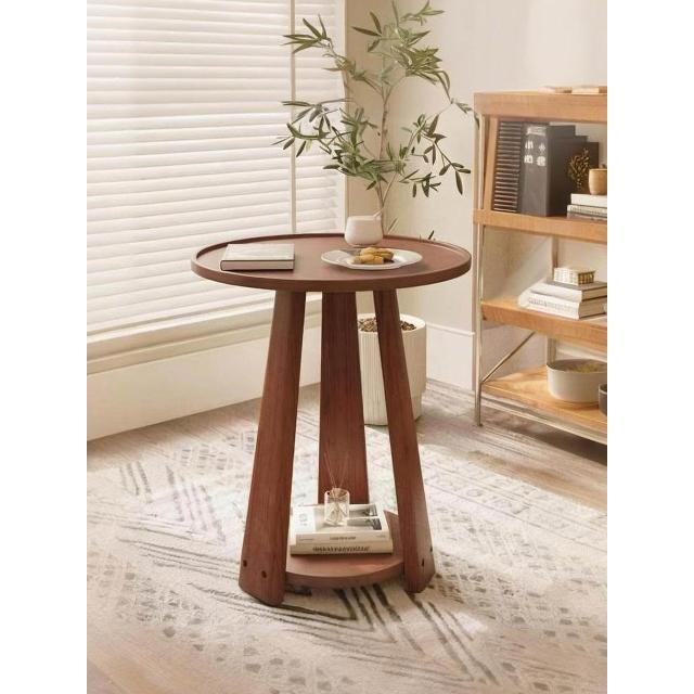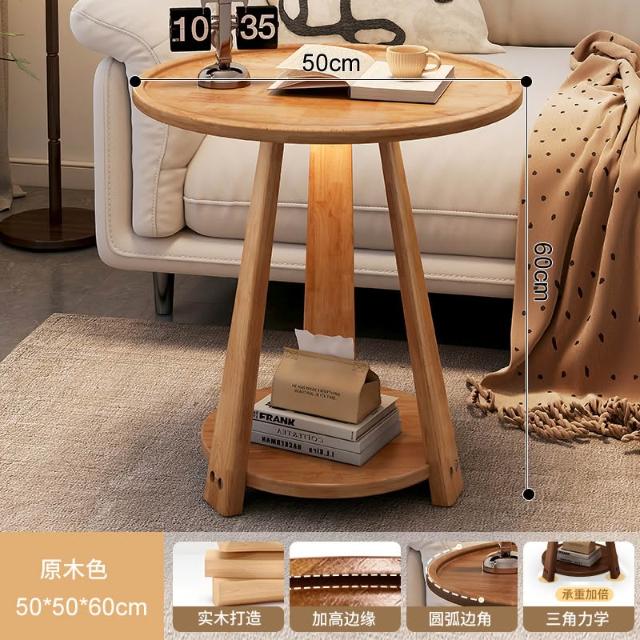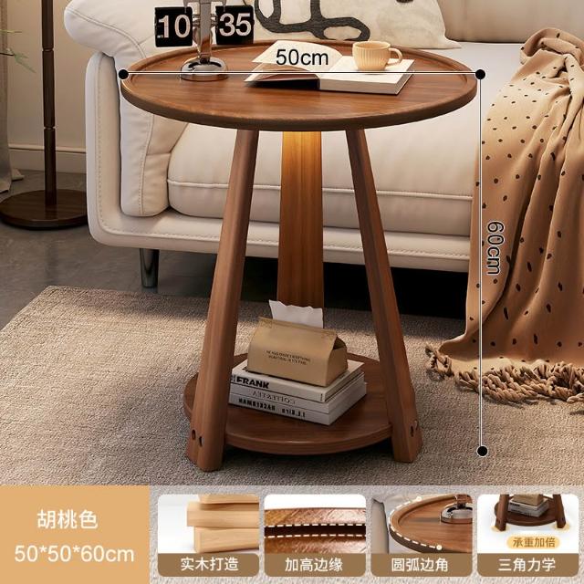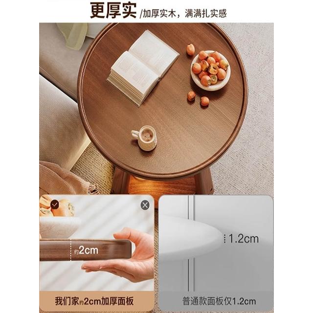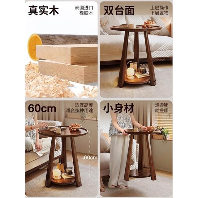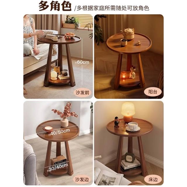 实木边几轻奢高级感沙发圆桌可移动床头小茶几家用客厅阳台小桌子