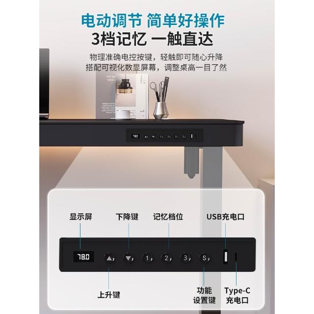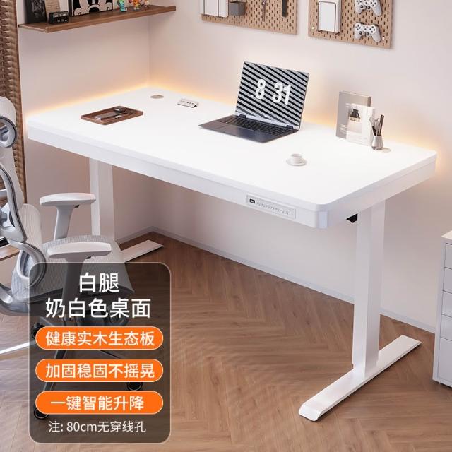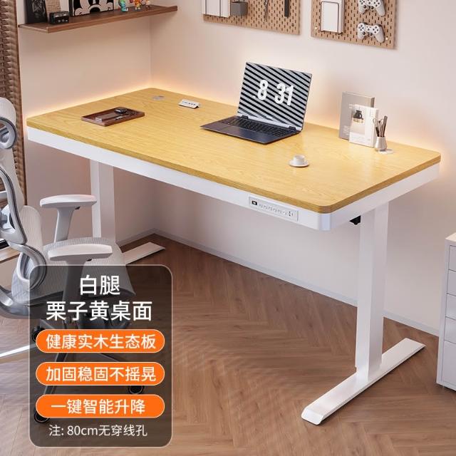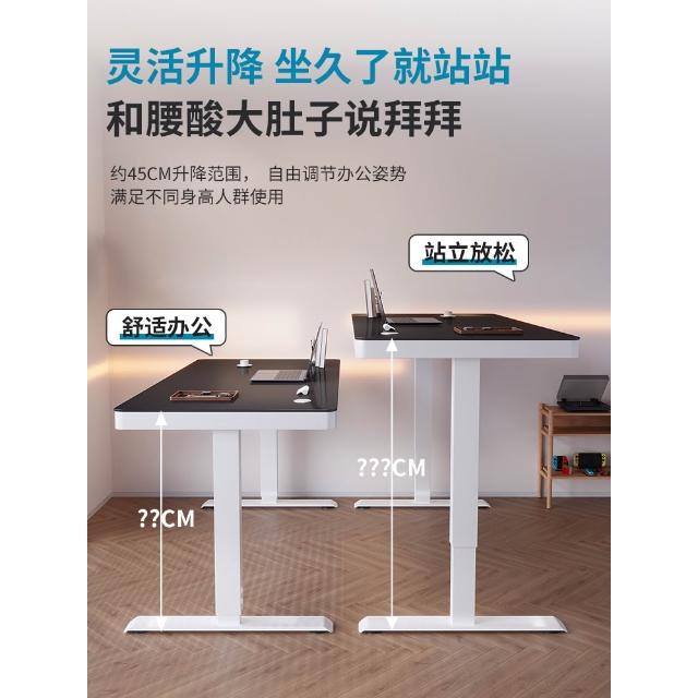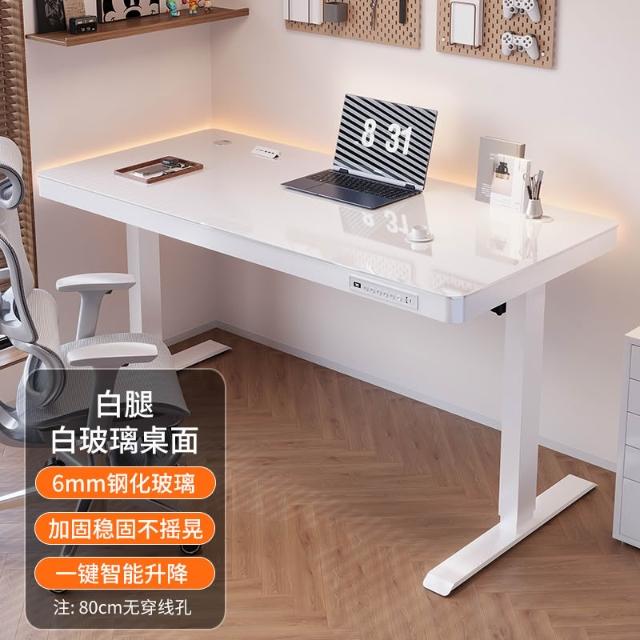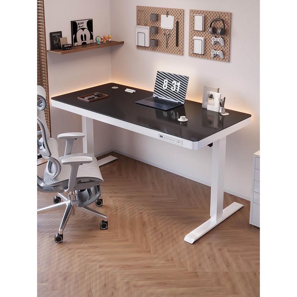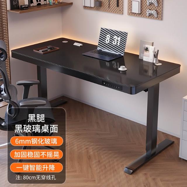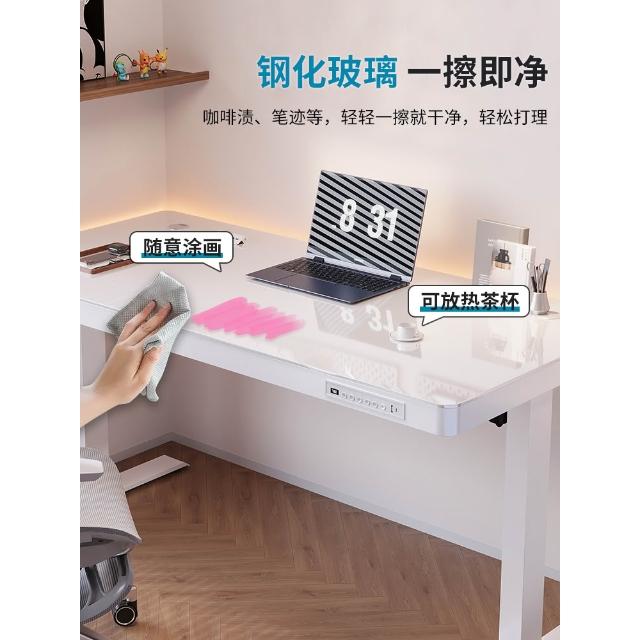 玻璃款電動升降桌實木智能電腦桌可升降電競桌子家用學習辦公書桌