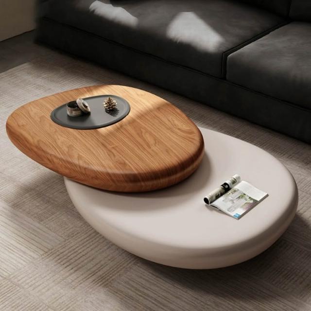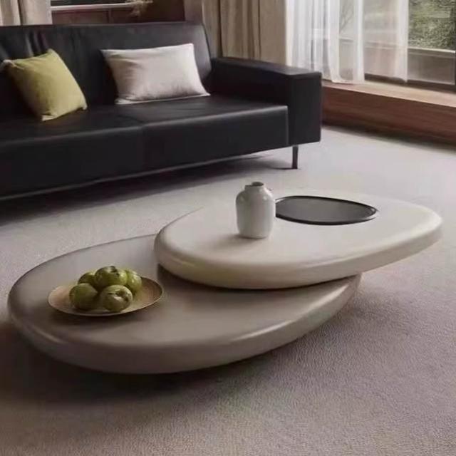 設計師款鵝卵石茶几小戶型意式極簡客廳家用異形現代簡約旋轉茶几