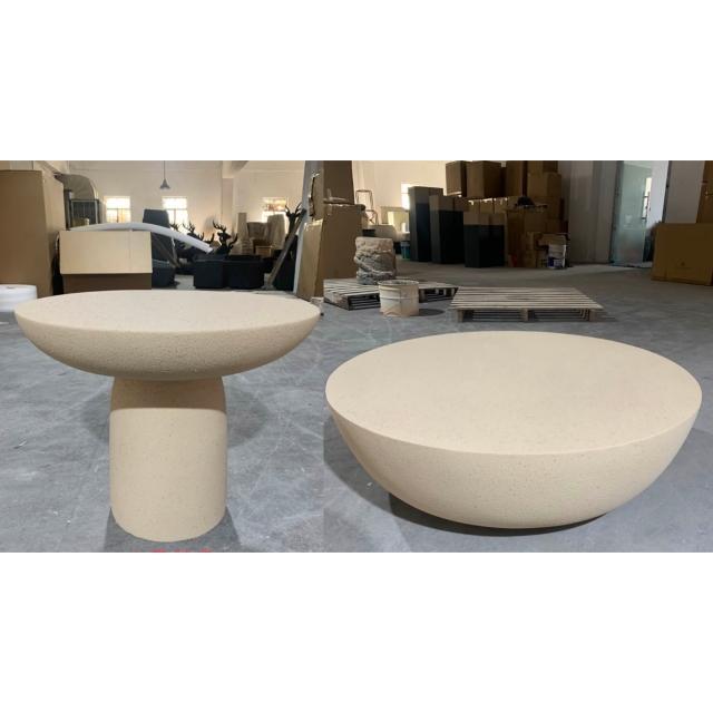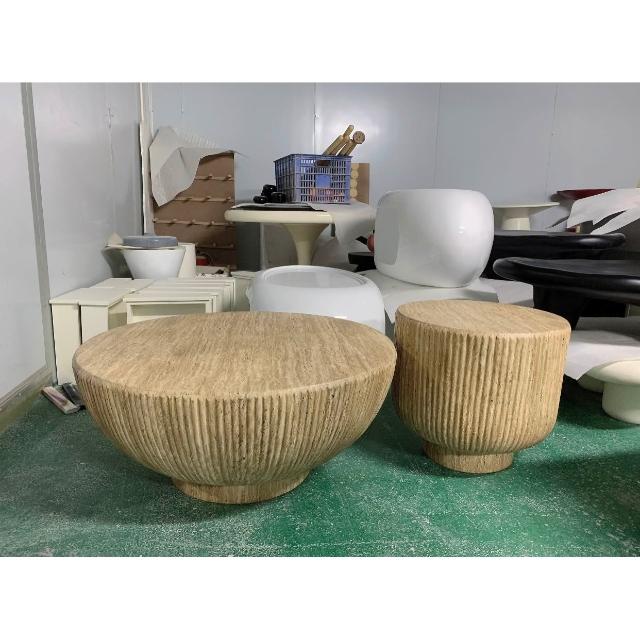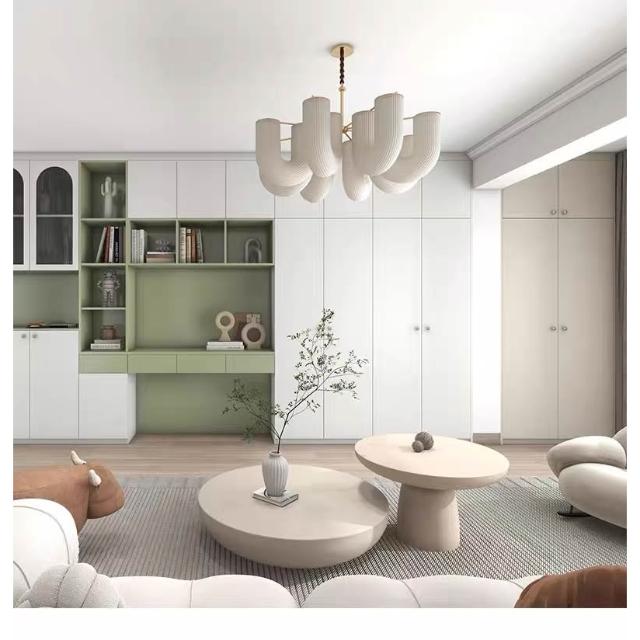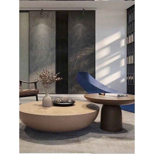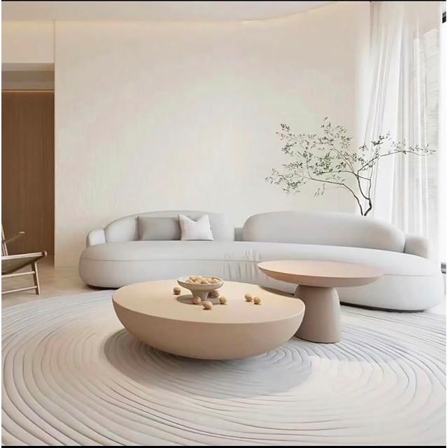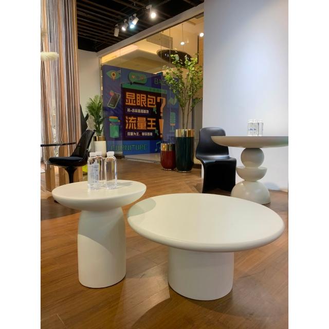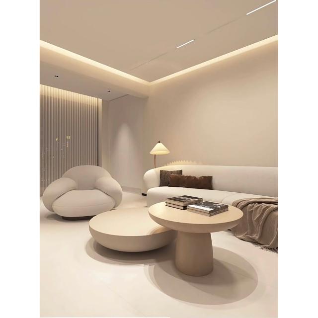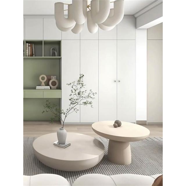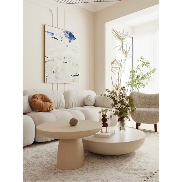 侘寂風奶油大小圓形組合茶几意式簡約小戶型設計師款高低組合茶桌