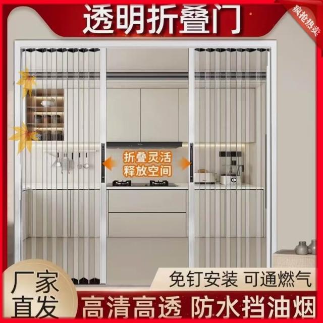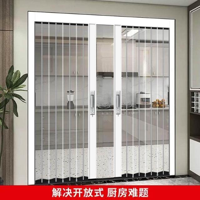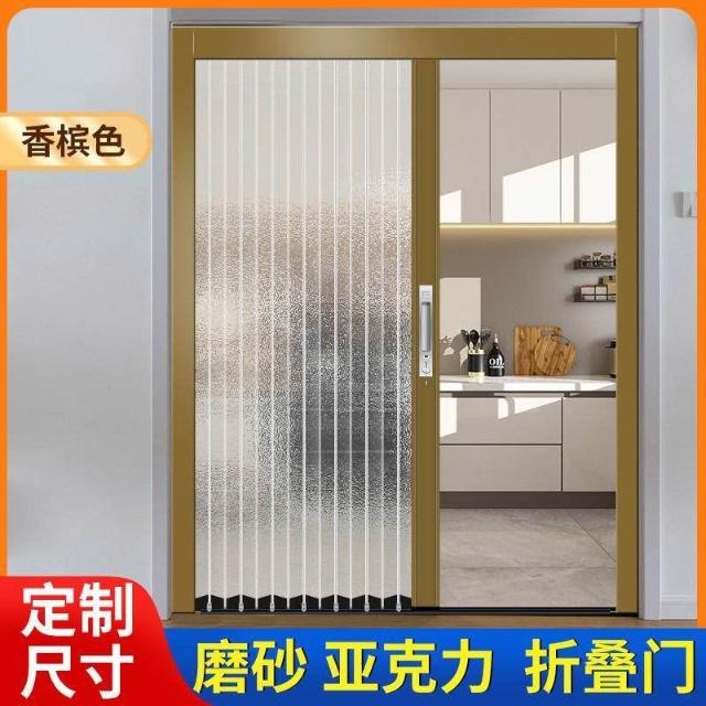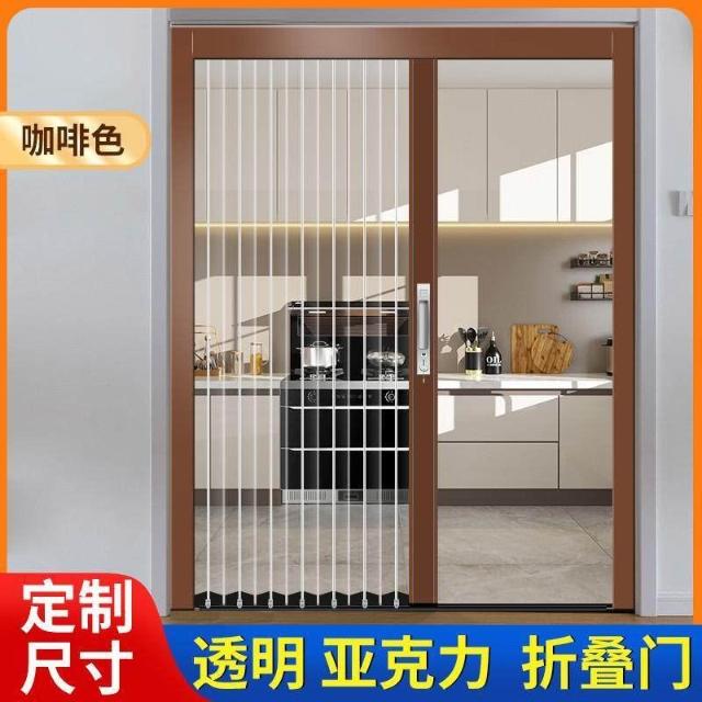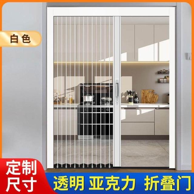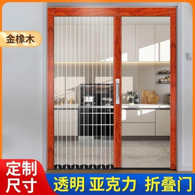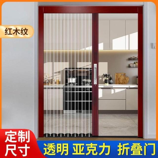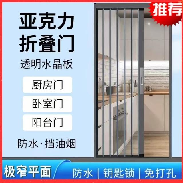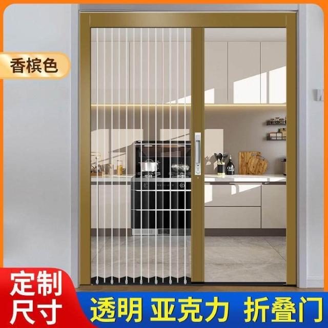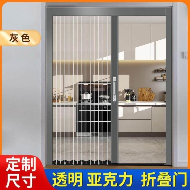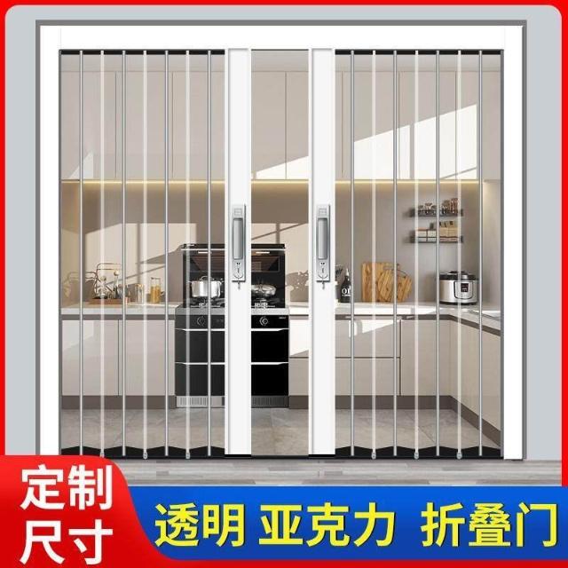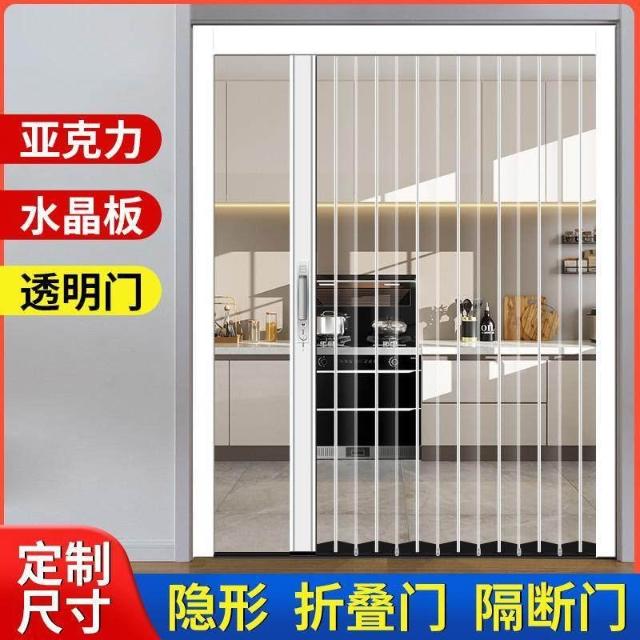 透明亚克力水晶板折叠门推拉门隐形铝合金厨房门客厅空调隔断移门