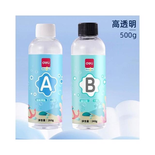 得力水晶滴膠手工膠水環氧樹脂 AB膠高透明硬膠500g大容量手工diy材料標本製作琥珀製作混合等比工具補充裝