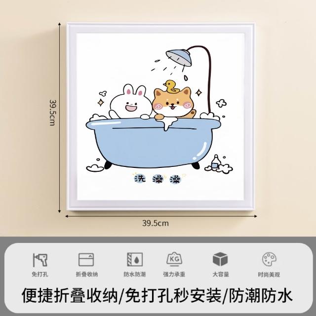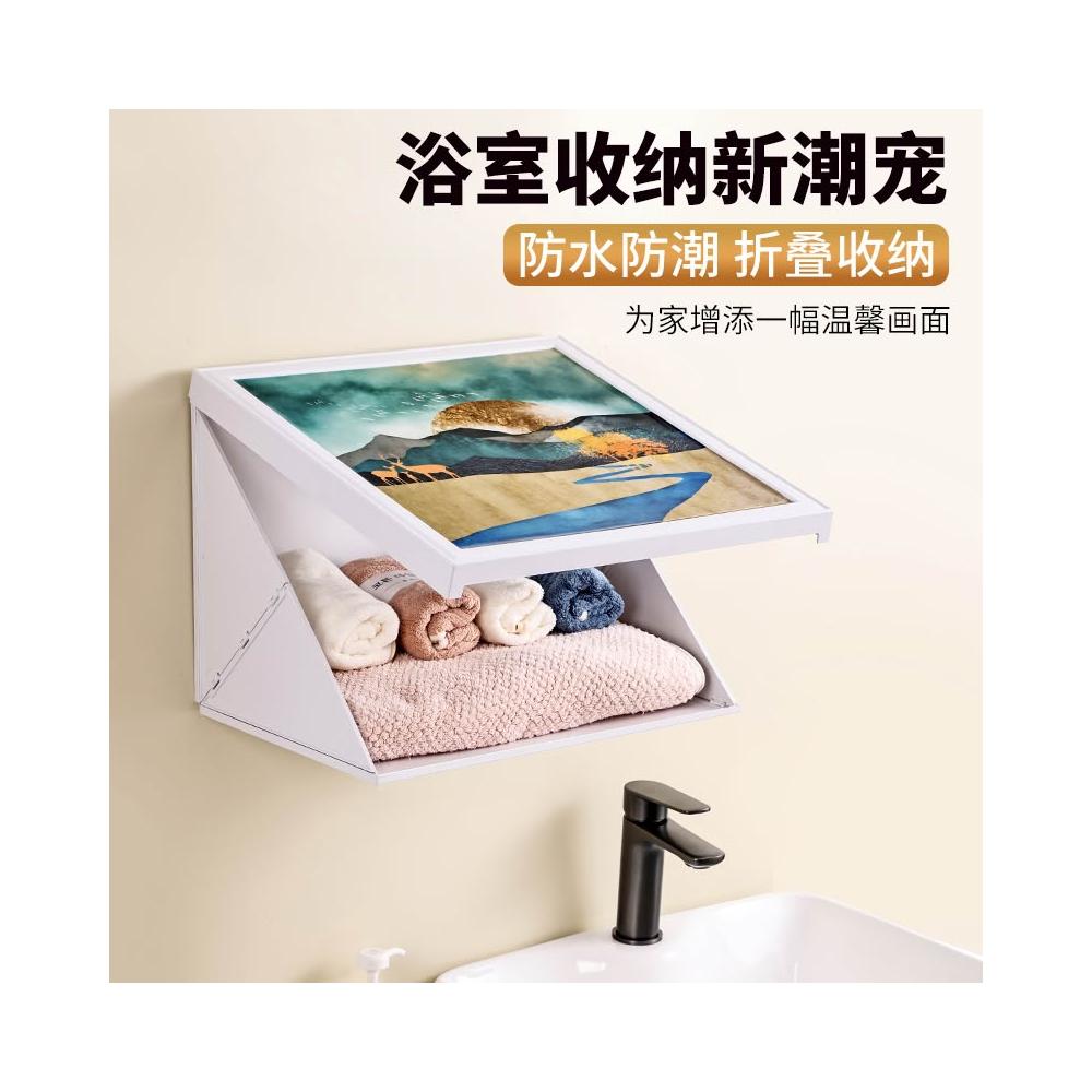 浴室壁画折叠收纳柜壁挂式置物架卫生间放换洗衣服神器免打孔安装