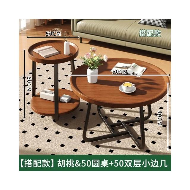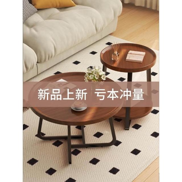 茶几客厅家用2024新款小户型极简胡桃木圆形组合创意休闲阳台茶桌
