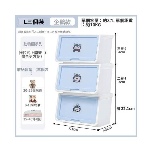 愛麗思家用前開式翻蓋收納箱兒童玩具衣物整理盒側開儲物箱愛麗絲