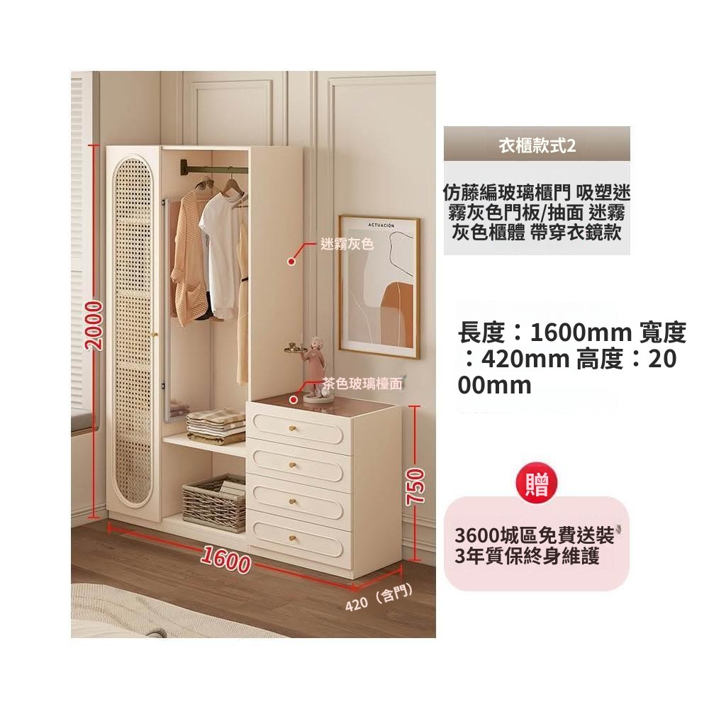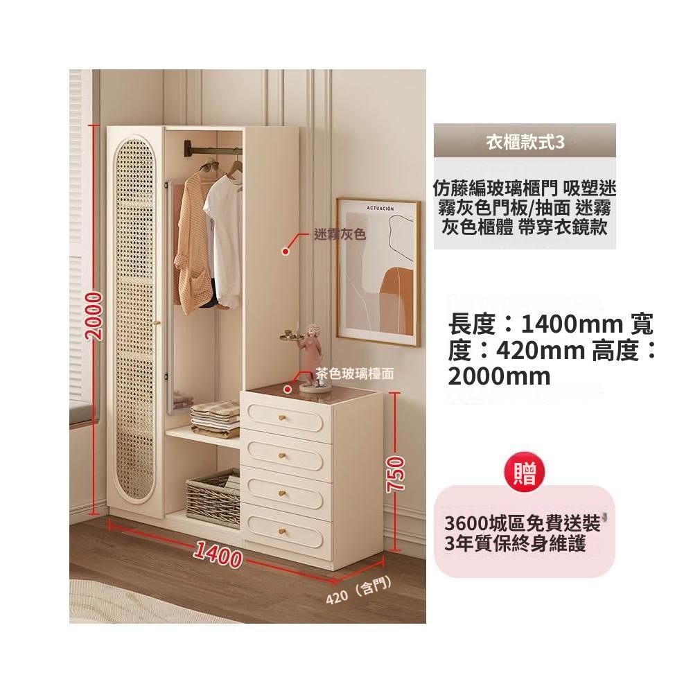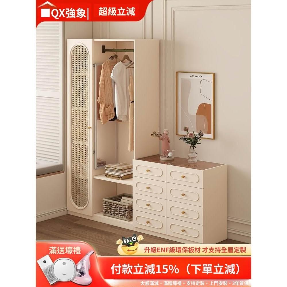 奶油床尾櫃鬥櫃掛衣架一體衣櫃臥室收納儲物櫃衣帽架置物櫃A63