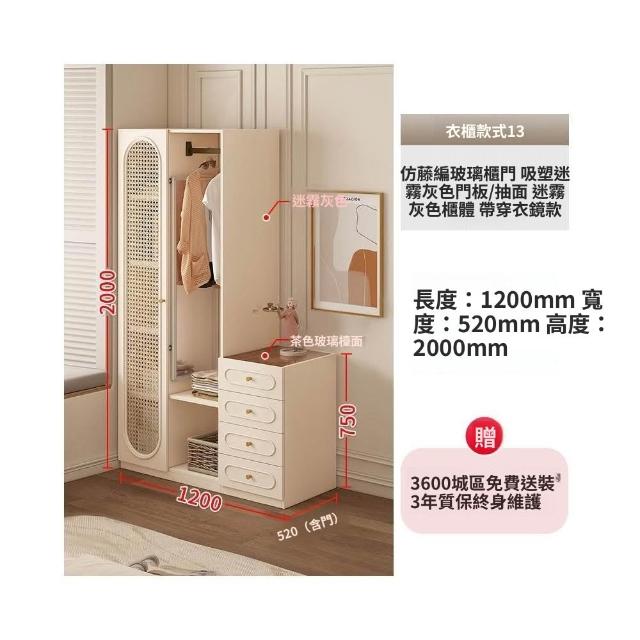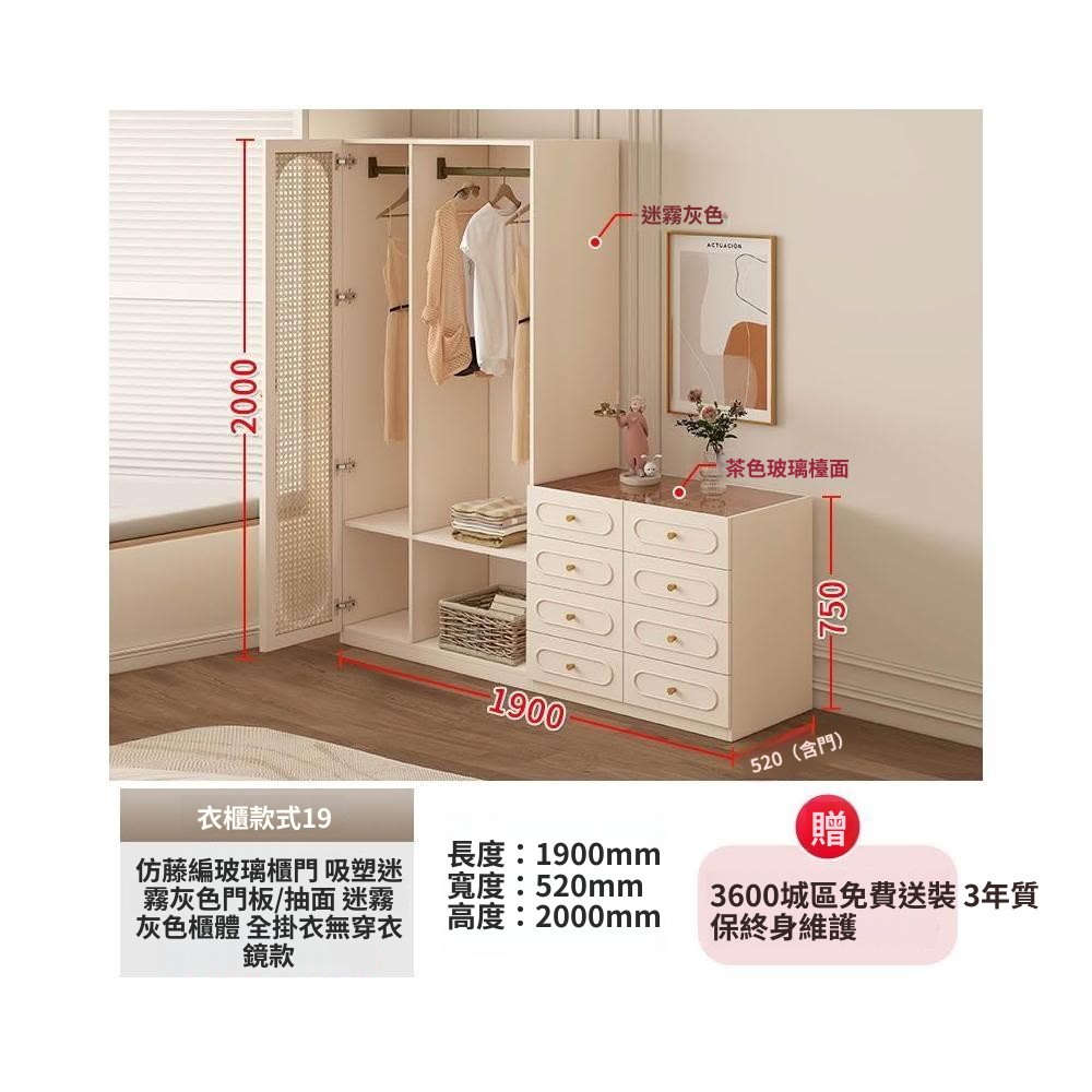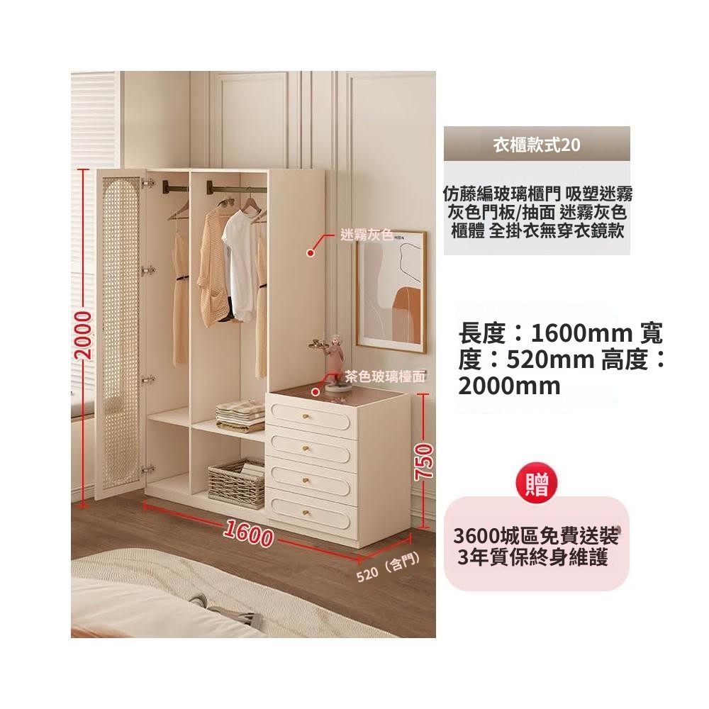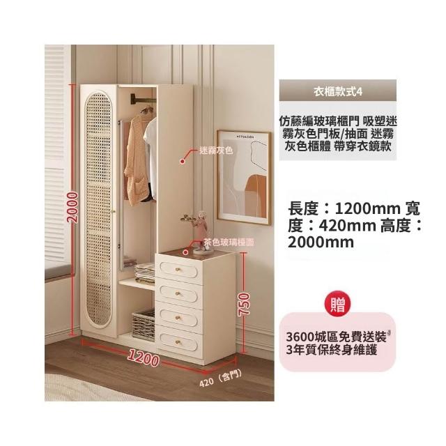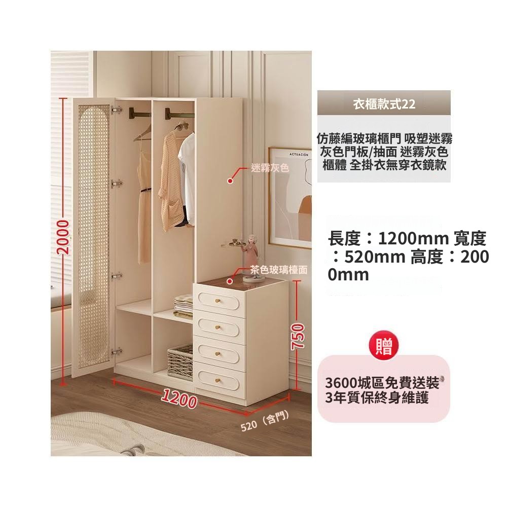 奶油床尾櫃鬥櫃掛衣架一體衣櫃臥室收納儲物櫃衣帽架置物櫃A63