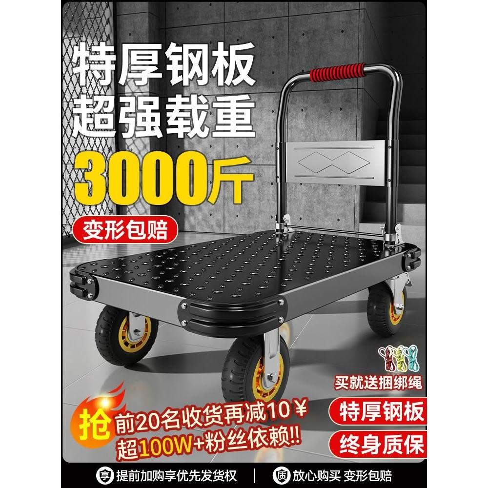 钢板小推车拉货手推车平板车搬运车拖车折叠便携小拉车快递手拉车