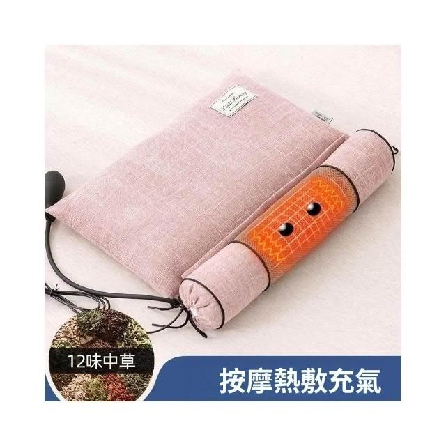 蕎麥艾草頸椎枕睡覺專用枕頭護頸枕圓柱充氣熱敷加熱頸椎牽引反弓