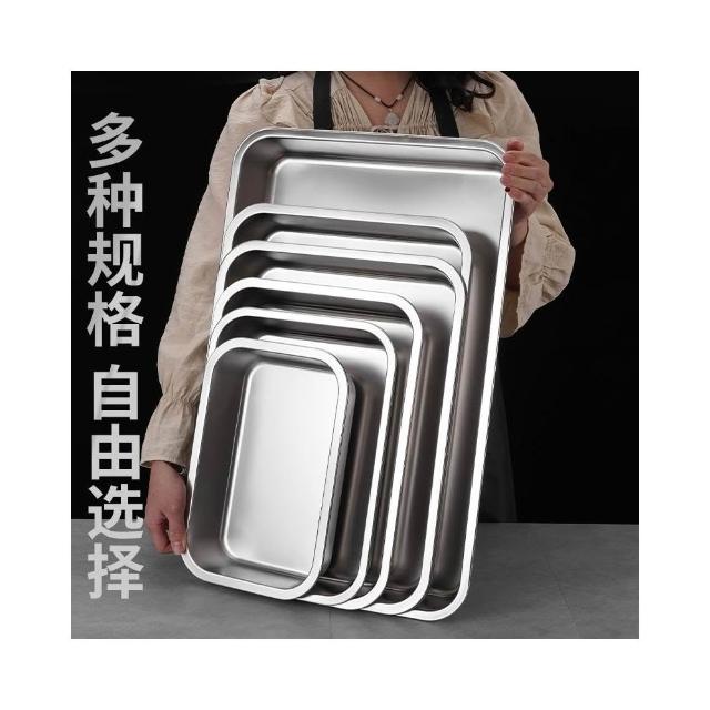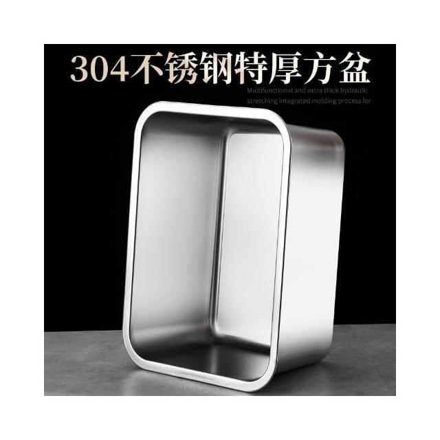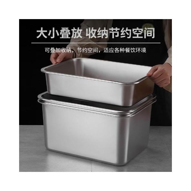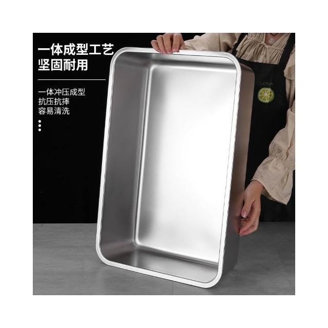304不銹鋼方盆長方形方盤自助餐份數盆加深託盤速食菜盆帶蓋方盒