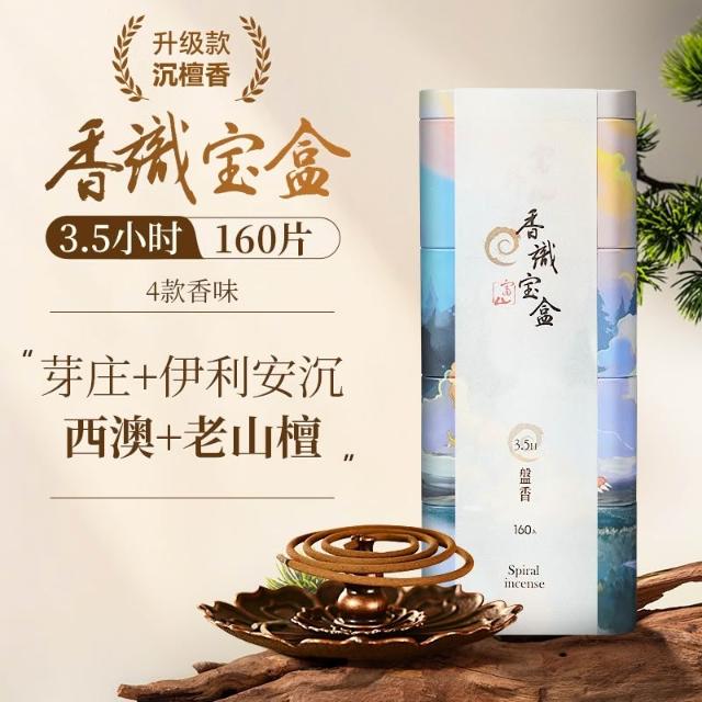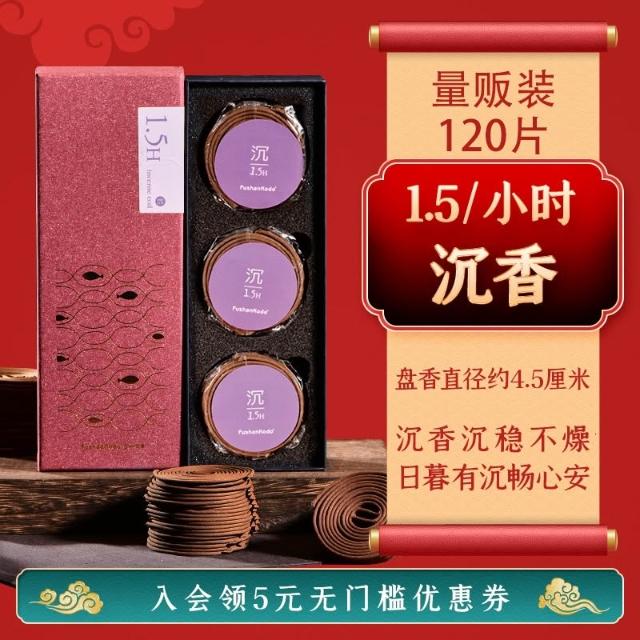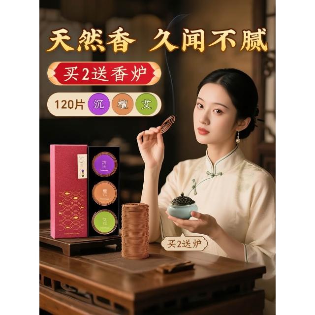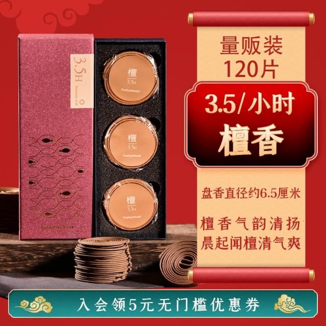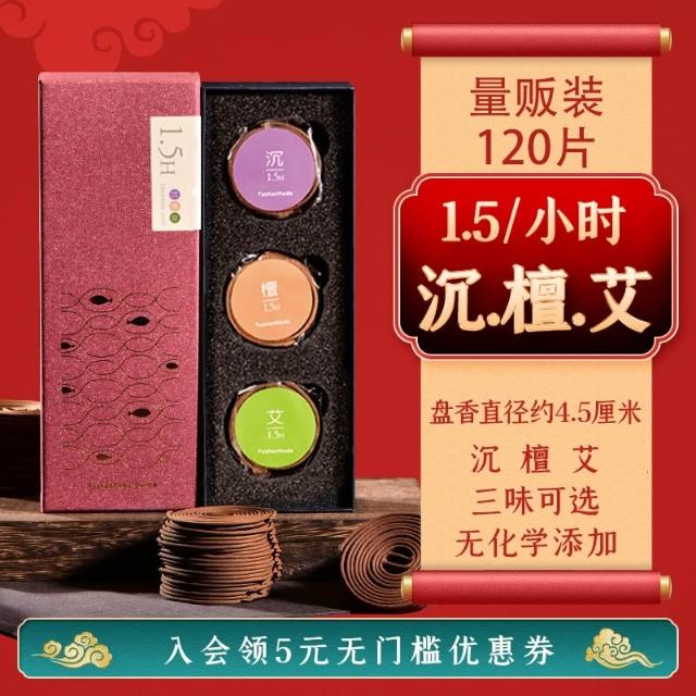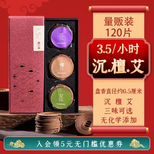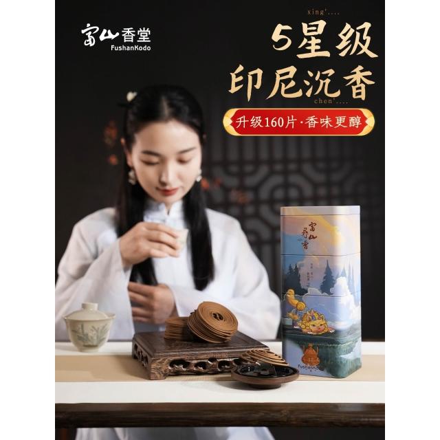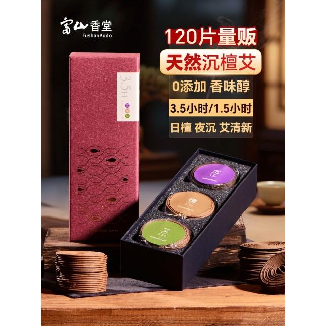 富山香堂檀香盤香沉香天然純香薰家用室內供佛熏香艾草驅蚊小盤香