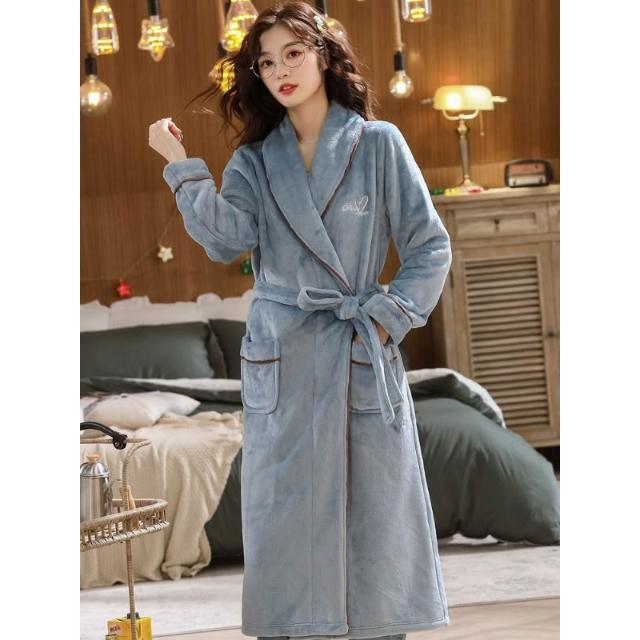 睡袍女秋冬季法蘭絨加厚加絨情侶睡衣男珊瑚絨浴袍女長款家居2025新款