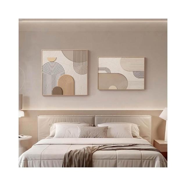 莫蘭迪臥室床頭裝飾畫幾何抽象房間主臥背景牆掛畫奶油風餐廳壁畫